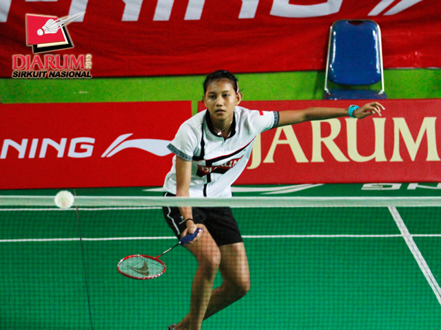 Ana Rovita (PB Djarum) bersiap mengembalikan kok ke arah Dian Fitriani (Pusdiklat Jaya Raya).