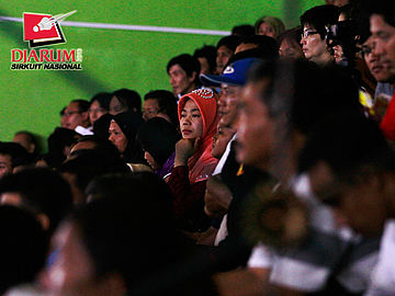 Salah satu penonton yang memadati GOR Hevindo, Balikpapan terlihat fokus menyaksikan pertandingan Dini Fitri/Inten Ratnasari (SGS PLN) melawan Monika Intan/Tri Okta (Mutiara Bandung).