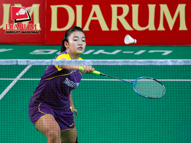 Elizabeth Purwaningtyas (SGS PLN) menyambar pengembalian tanggung dari Dinar Dyah (PB Djarum).