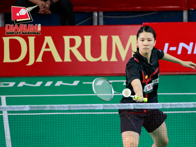 Sylvinna Kurniawan (PB Djarum) menyambut serve dari Mutiarani (SGS PLN).