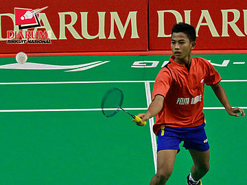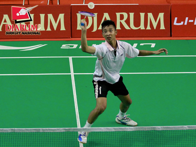 Saiful (Pelita Bakrie Jakarta) berusaha mengembalikan kok ke arah Emanuel Randy (Pelatprov PBSI DKI Jakarta)