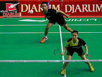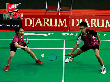 Dodi Ahmad Hidayat/Fitria Anggraeni mengembalikan smash keras.