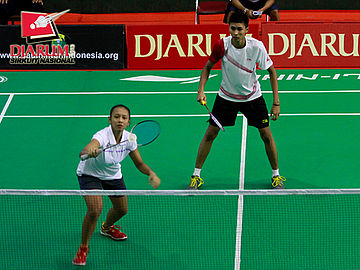 Pasangan ganda Marvin Mainaky/Lyanny Alessandra Mainaky mencoba menahan smash.