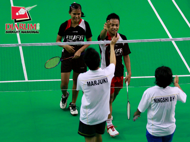 Pasangan Ganda Ziro Hilmar/Maya menerima serve dari Marvin Mainaky/Lyanny Alessandra Mainaky.