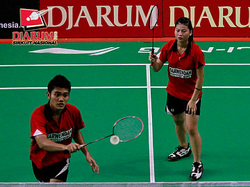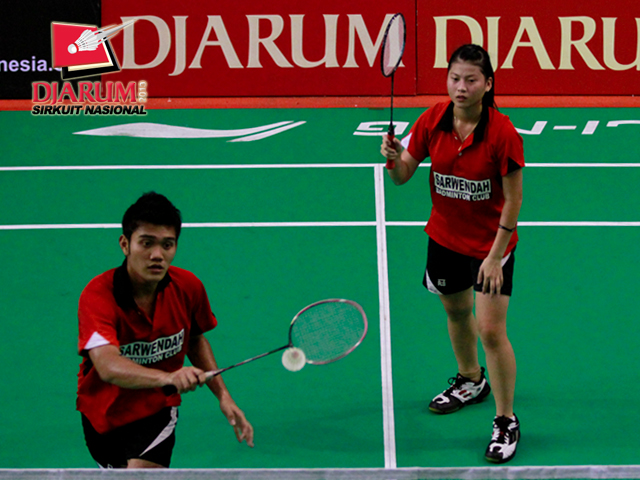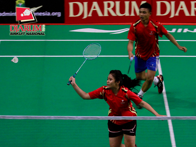 Andry Ilmiyawan/Fristy Tania (Jaya Raya Azikra) mengembalikan serve ke arah Hardi Yuda S/Mitzi Abigail Purnama (Sarwendah BC).