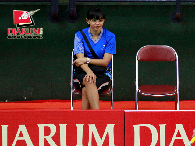 Maria Kristin Yulianti sedang duduk di bangku pelatih.