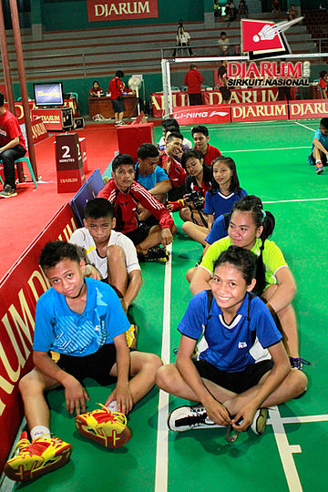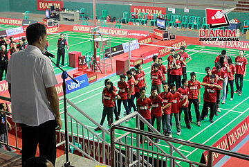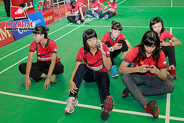 Sejumlah peserta saat bersantai di lapangan sebelum upacara pembukaan Djarum Sirkuit Nasional (Sirnas) Sulut Open 2013, di GOR Ari Lasut, Manado.