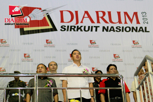 Ketua Umum PB PBSI, Gita Wirjawan (tengah) sebelum membuka Djarum Sirkuit Nasional (Sirnas) Sulut Open 2013, di GOR Ari Lasut, Manado.