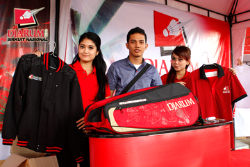 Tiga user Djarum saat memamerkan salah satu merchandise terfavorit di Djarum Sirkuit Nasional Sumatera Open 2013, Medan.