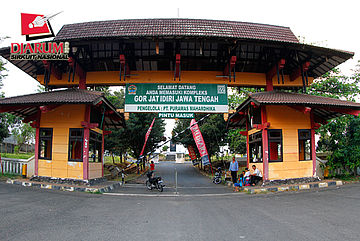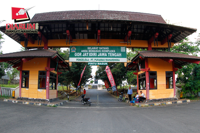 Pintu masuk utama kompleks GOR Jatidiri yang akan melangsungkan Djarum Li-Ning Sirkuit Nasional 2013, Semarang.