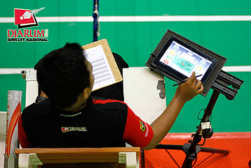 Salah satu wasit saat sedang mengoperasikan live score.