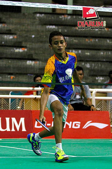 Alang Panji (Pertamina Indonesia) mengembalikan shuttlecock ke arah Syaherdillah Wijianto (Pendowo).