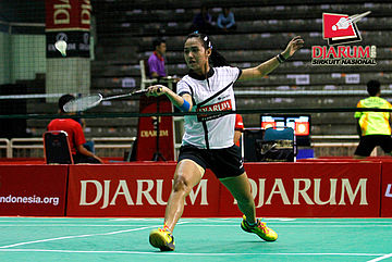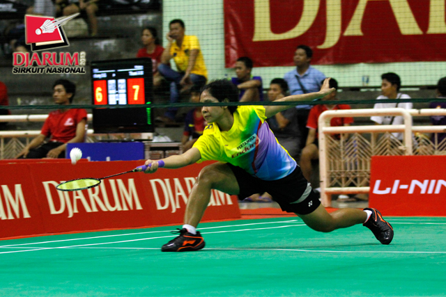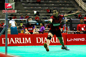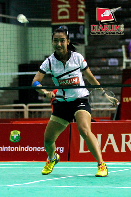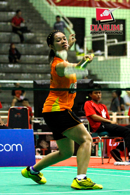 Ana Rovita (PB Djarum) berhasil menahan serangan yang dilepaskan Yeni Asmarani (Pelatnas).