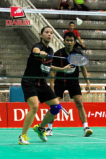 Andika Ramadiansyah/Marsheilla Gischa (PB Djarum) bersiap menyambut pengembalian dari Wisnu Cahyo/Brigita (Exist).