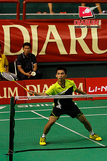 M. Takhjul Arifin Billah (BAYU KENCANA) mencoba menggapai shuttlecock.