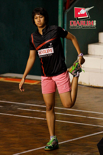 Melisa Andesti (DJARUM) sedang melakukan pemanasan sebelum bertanding.