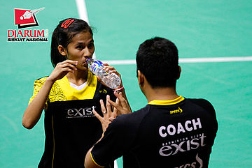 Priskila Siahaya (Exist) saat mendapatkan pengarahan dari pelatih.