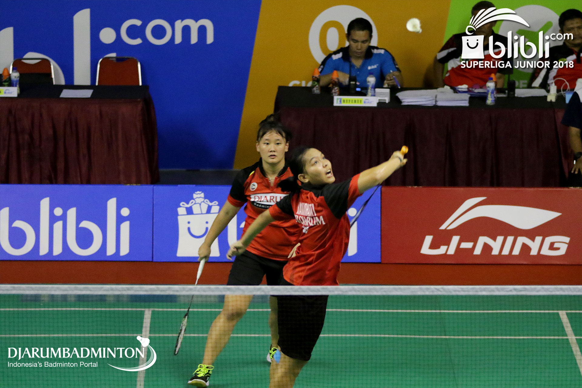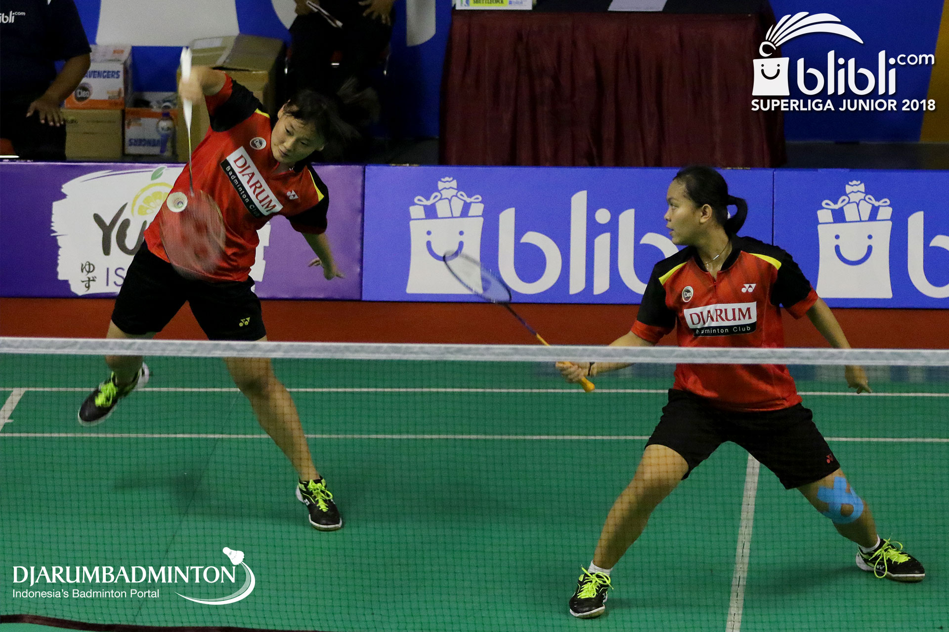 Febriana Dwipuji Kusuma/Ribka Sugiarto (PB. DJARUM) berusaha mengembalikan serangan