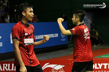 Selebrasi Kemenangan Bagas Maulana/Calvin Ciputra