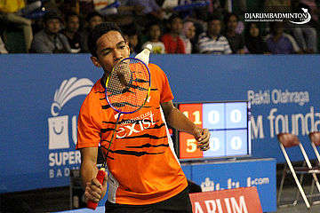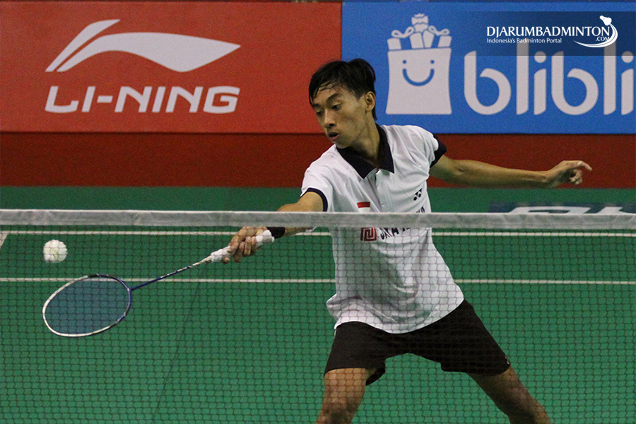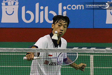 Chico Aura Dwiwardoyo Mengambil Shuttlecock