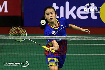Tan Min Er (Malaysia) Mengembalikan Shuttlecock