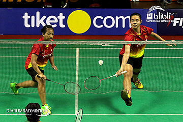 Febriana Dwipuji Kusuma/Ribka Sugiarto (Djarum) Mengembalikan Shuttlecock
