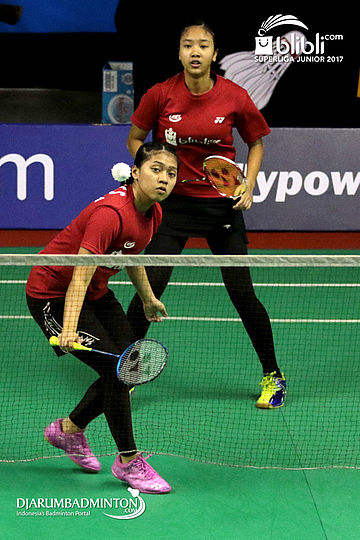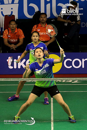 Angelica Wiratama/Hediana Julimarbela (Exist Badminton Club) Bersiap Menyambar Pengembalian