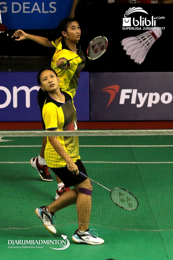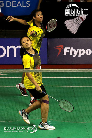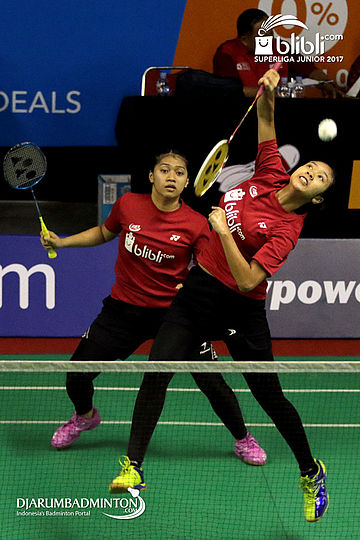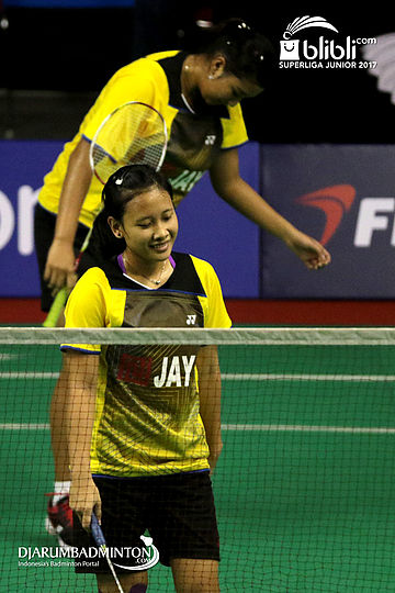 Indah Cahya Sari Jamil/Metya Inayah Cindiani (Djarum) Melepaskan Serangan