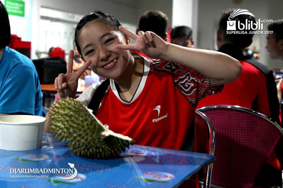Humina Kato (Japan) Berpose Usai Mencicipi Buah Durian