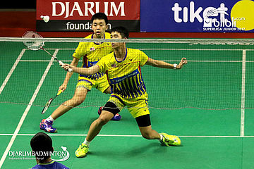 Ki Dong Ju/Yang Ji Woong (Korea) Mengembalikan Shuttlecock