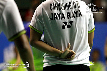 Dinda Dwi Cahyaning (Jaya Raya Jakarta) Memberikan Isyarat Kepada Partnernya