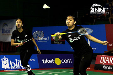 Nita Violina Marwah/Putri Syaikah Ulima Hidayat (Exist Badminton Club) Menyambut Pengembalian