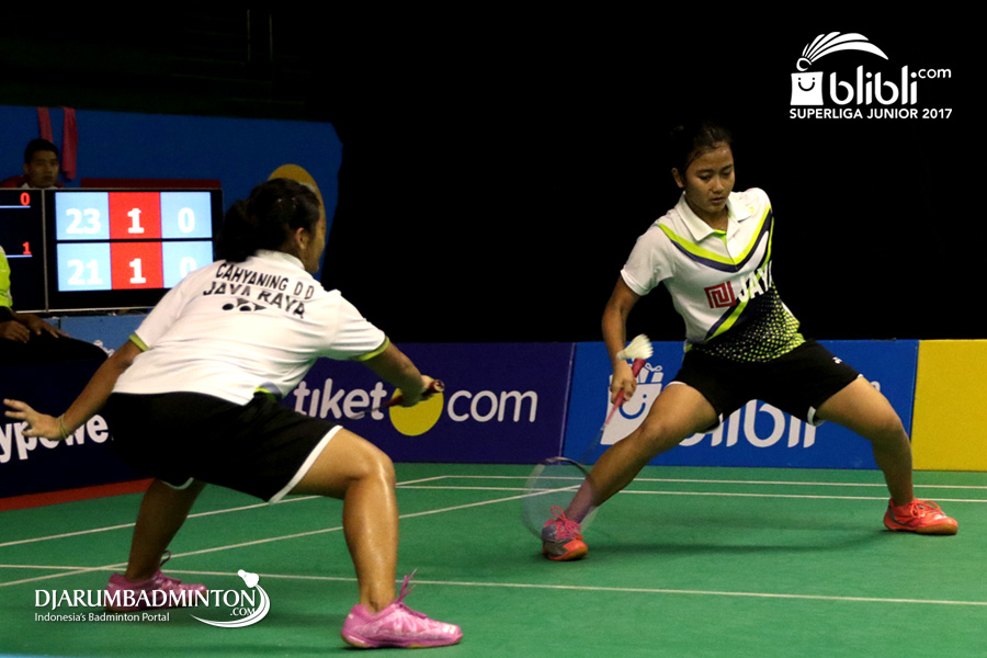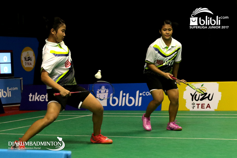 Indah Cahya Sari Jamil/Metya Inayah Cindiani (Djarum) Menghadang Serangan