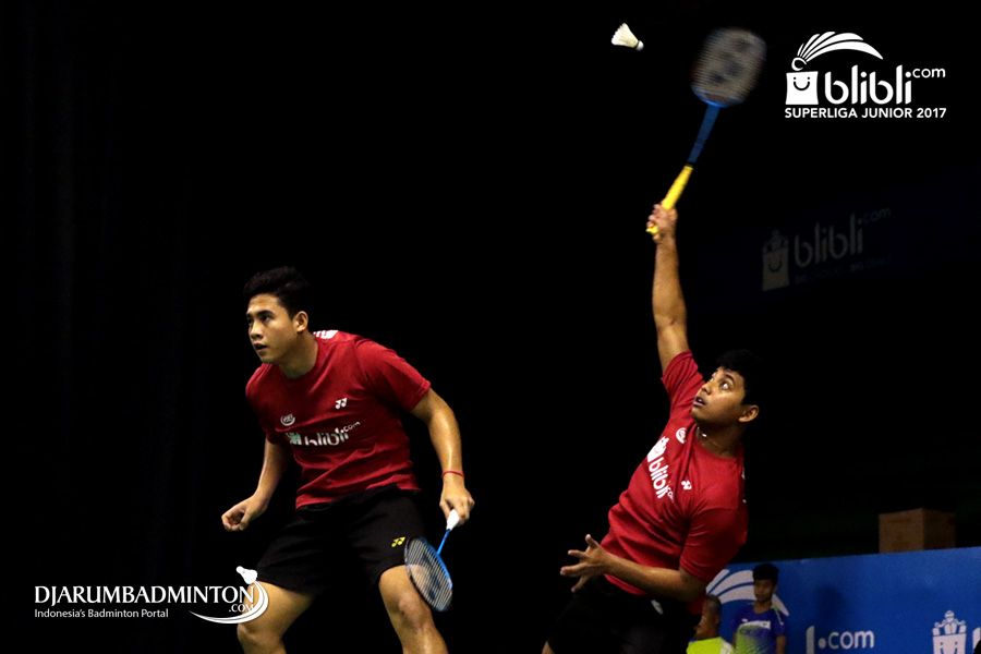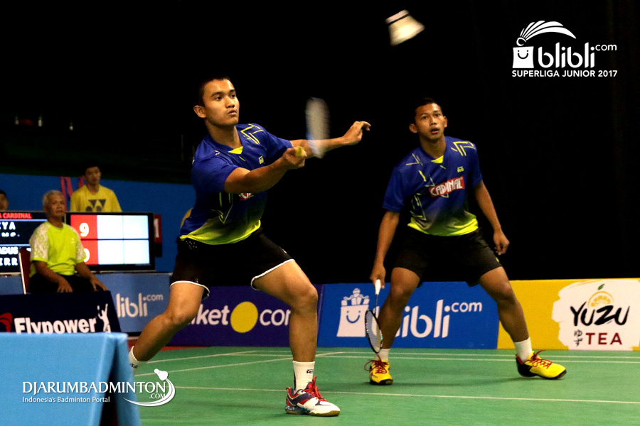 Helmi Yudha Arrafi/Peter Mandala Surya Sumardi (Mutiara Cardinal) Mengembalikan Shuttlecock
