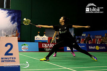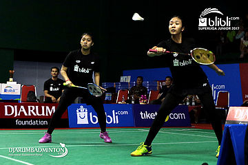 Indah Cahya Sari Jamil/Metya Inayah Cindiani (Djarum) Mengembalikan Shuttlecock
