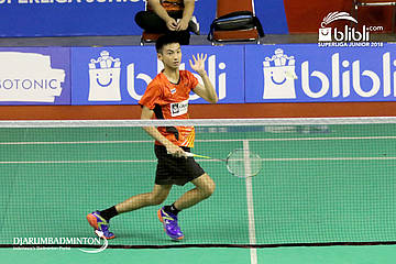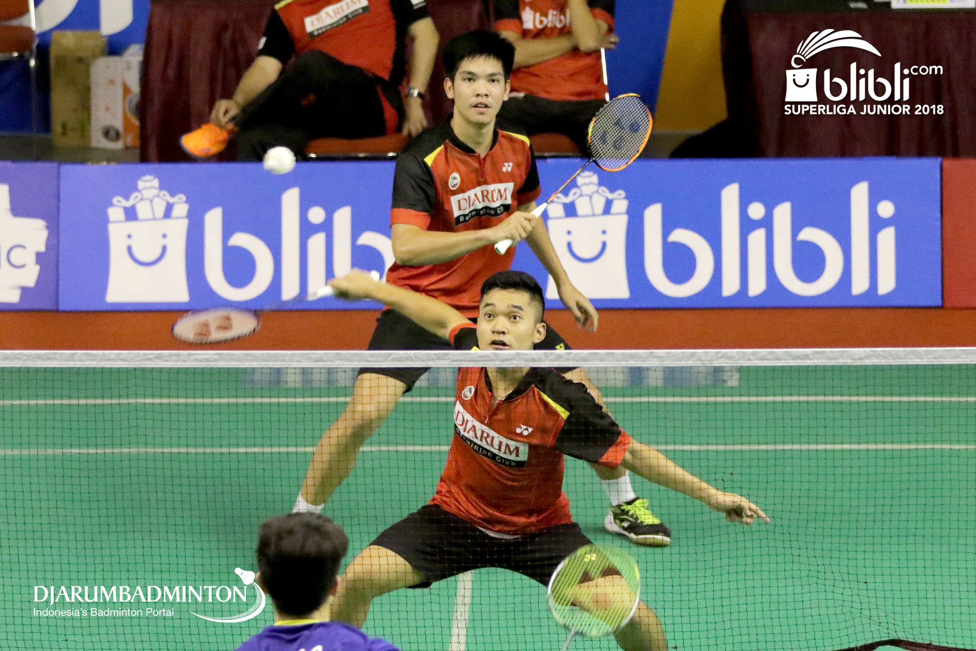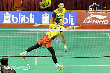 Daniel Marthin/Leo Rollycarnando (PB. DJARUM) mengembalikan shuttlecock