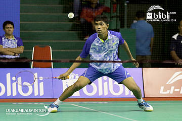 Shubham Patel (INDIA) bersiap menyambut serangan