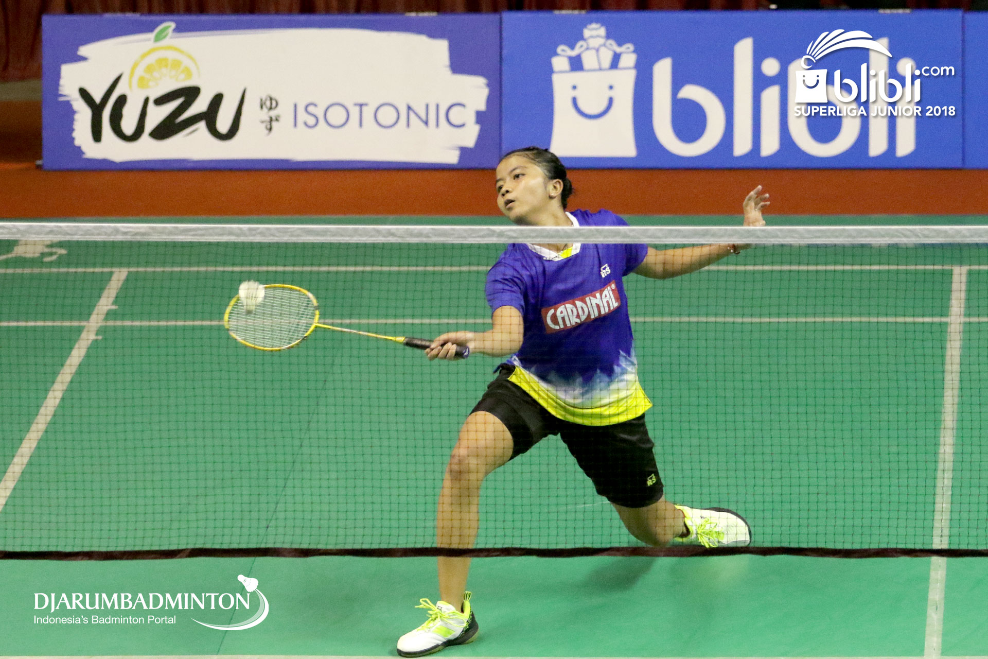 Shabrina Aulia Yasmin (PB. MUTIARA CARDINAL) menyambut shuttlecock