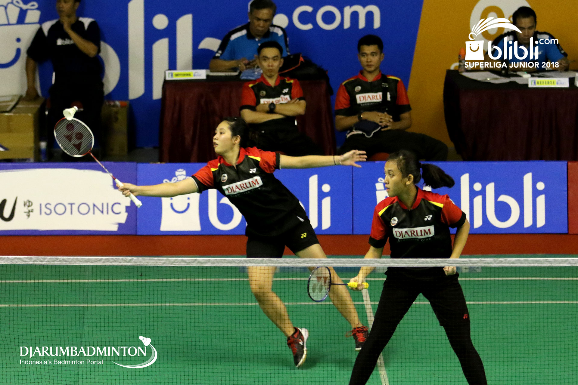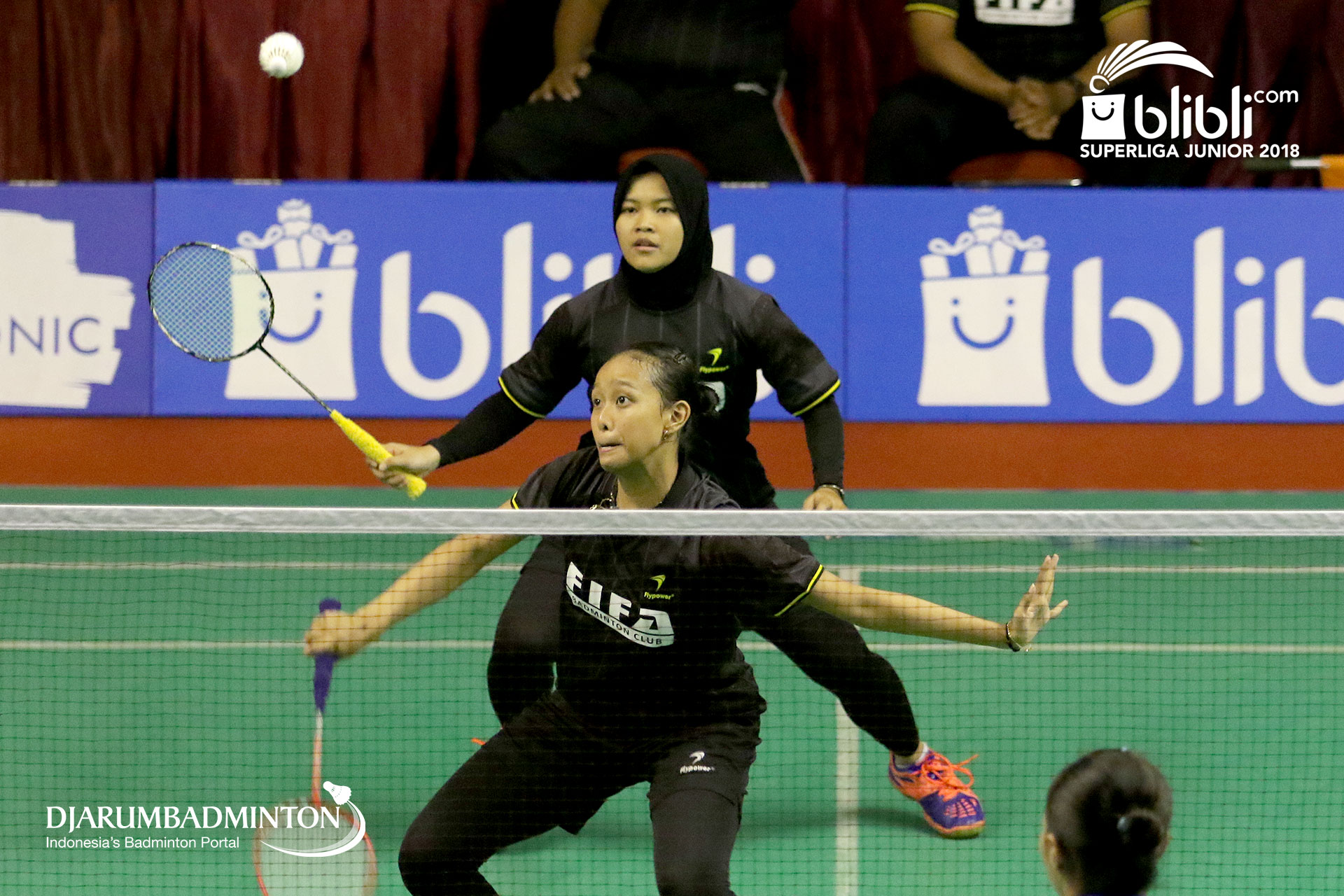 Berlian Putri Laksono/Pryskila Mamudah (PB. FIFA SIDOARDJO) mengembalikan shuttlecock