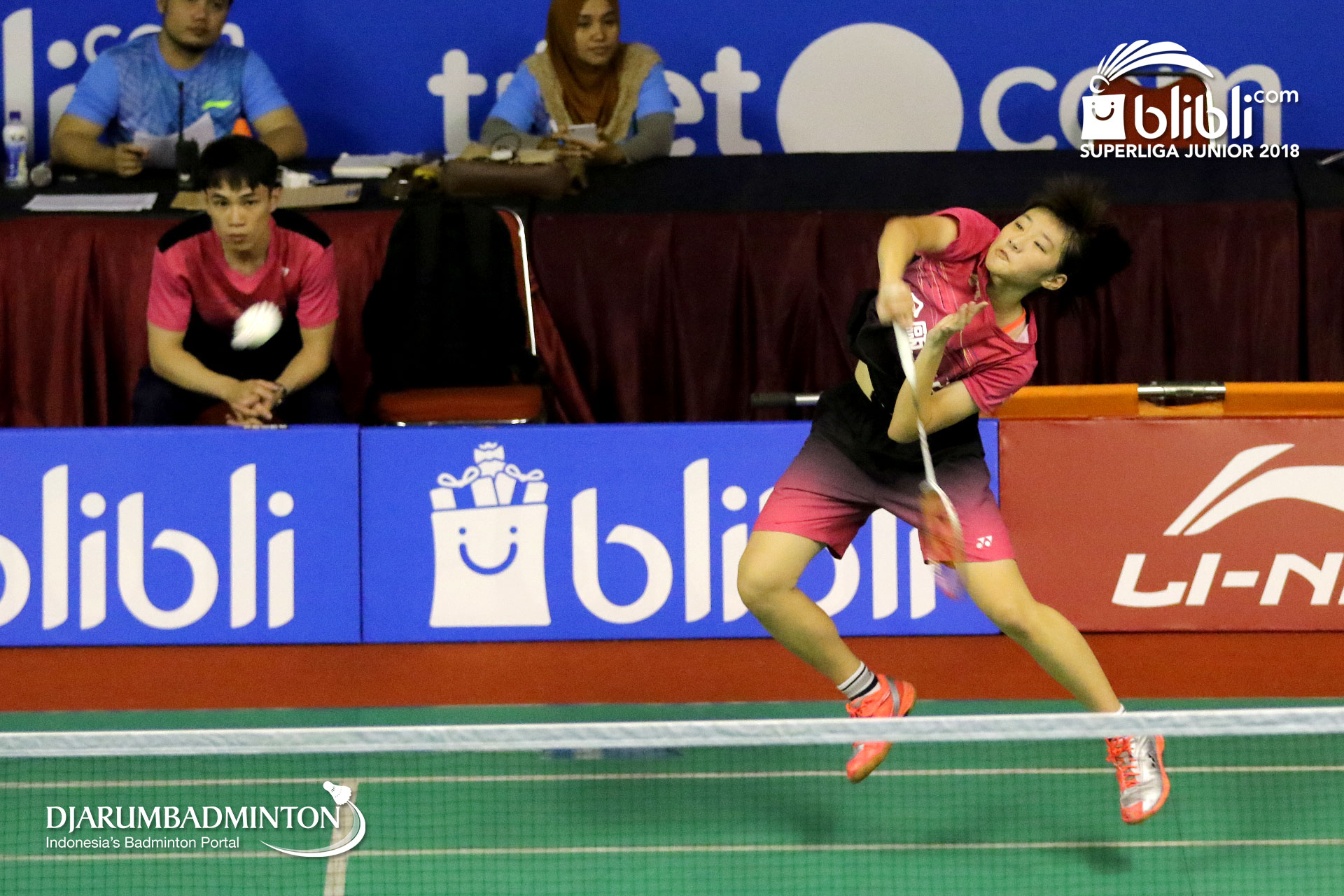 HUANG,CHIEN-TZU (KEELUNG HIGH SCHOOL-CHINESE TAIPEI) melepaskan serangan