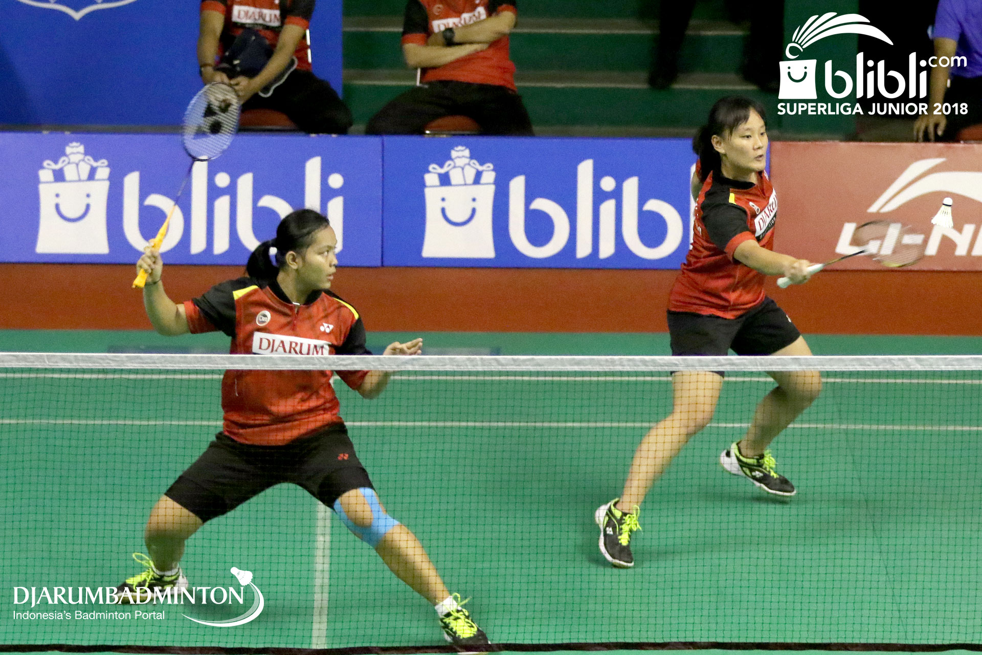 Nita Violina Marwah/Putri Syaikah Ulima Hidayat (PB. EXIST) melepaskan serangan