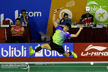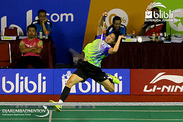 Yonathan Ramlie (PB. EXIST) mengembalikan shuttlecock