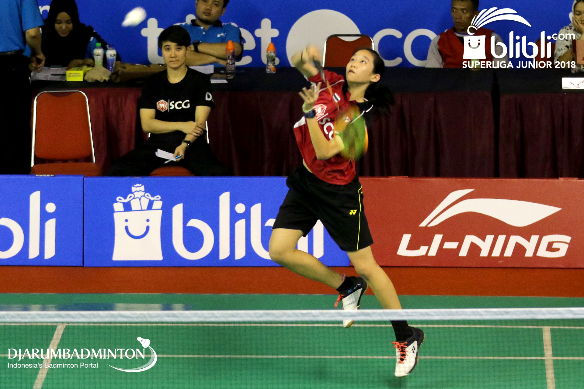 Thanmonwan Nithiittikrai (SCG-THAILAND) bersiap menyambar shuttlecock