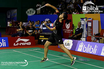 Muh. Asqar Harianto (PB. DJARUM) bersiap menyambut shuttlecock