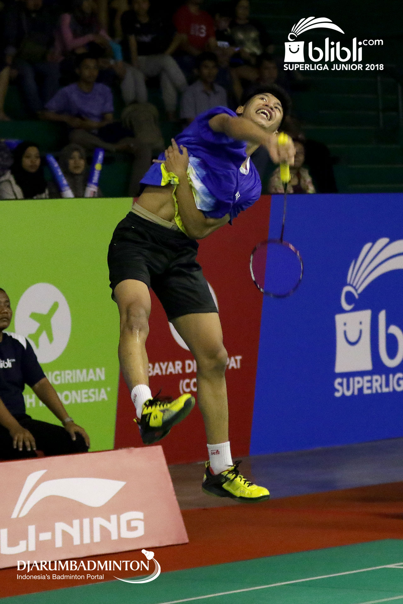 Arya Kusuma (PB. MUTIARA CARDINAL) melepaskan smash