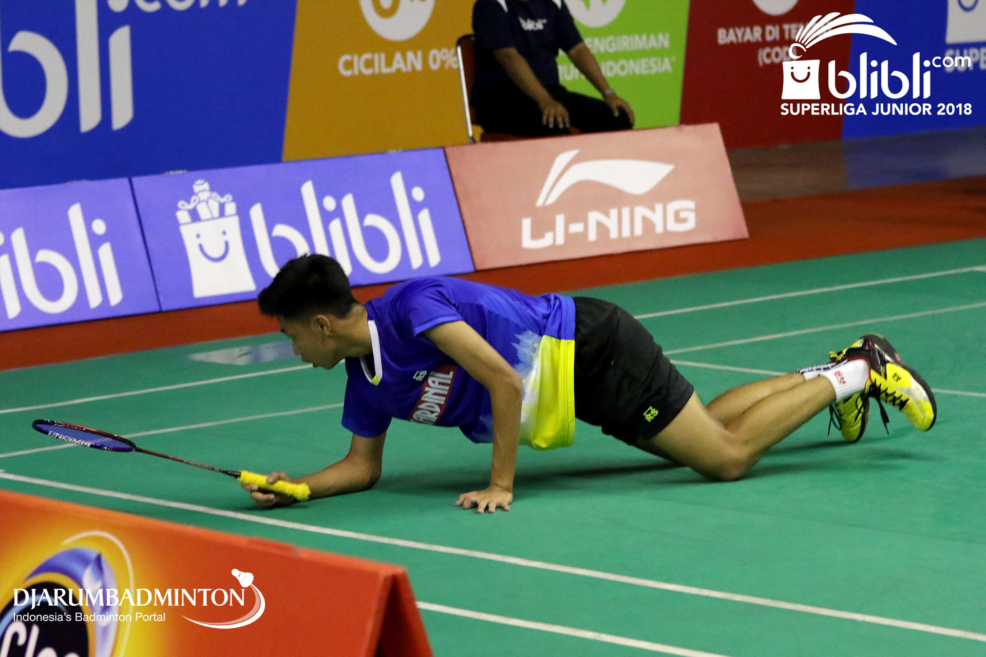 Arya Kusuma (PB. MUTIARA CARDINAL) terjatuh saat berusaha menggapai pengembalian