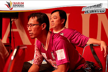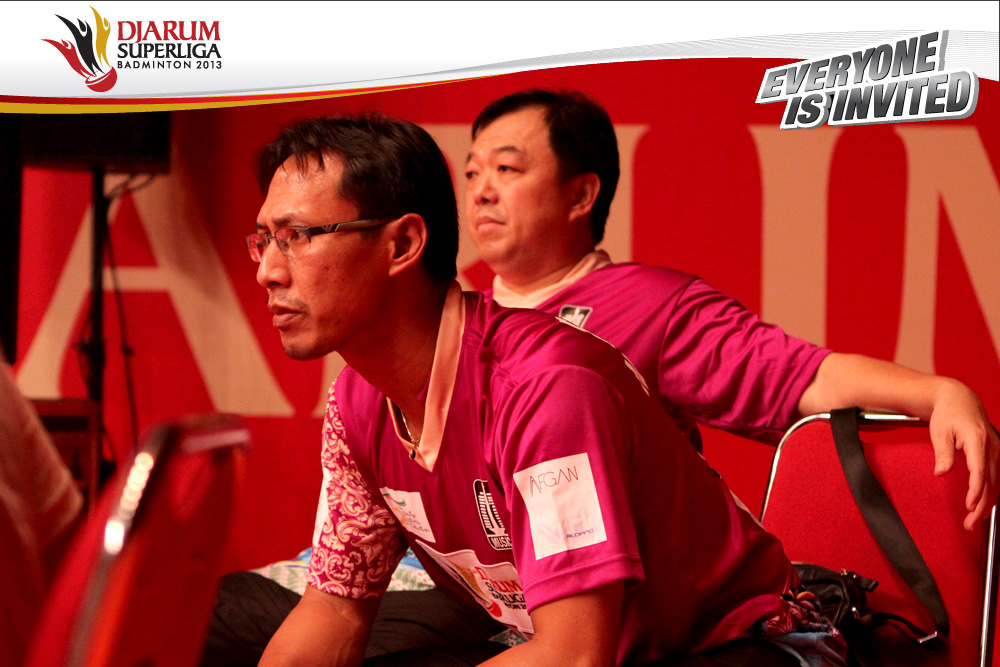 Sigit Budiarto terlihat serius dan tengang saat menyaksikan Rendra Wijaya dan Rian Sukmawan bertanding