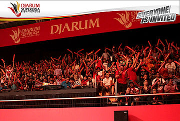 Ribuan penonton yang memadati DBL Arena memberikan dukungan penuh kepada PB Musica Champion