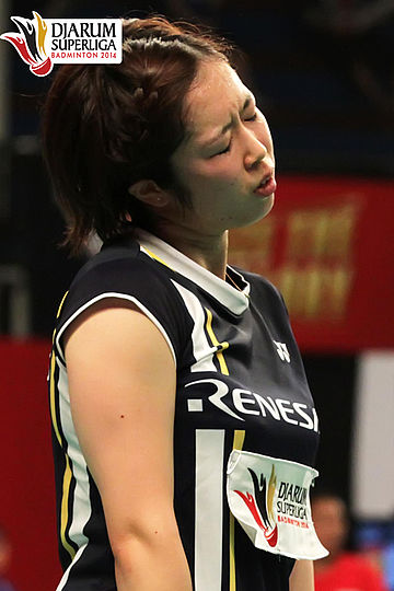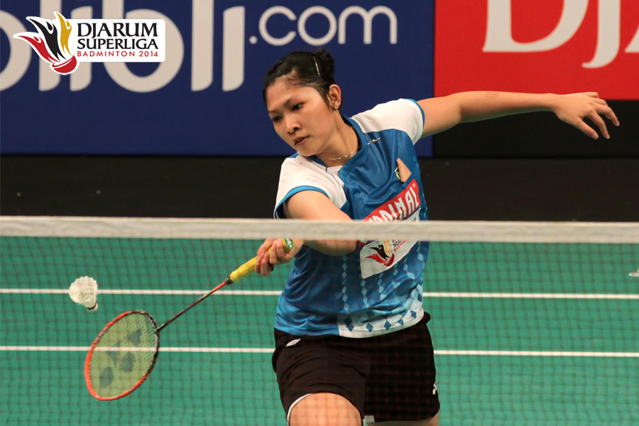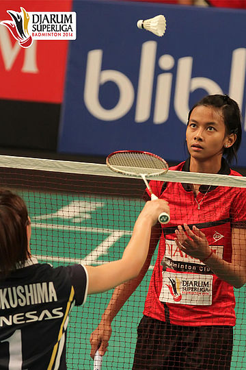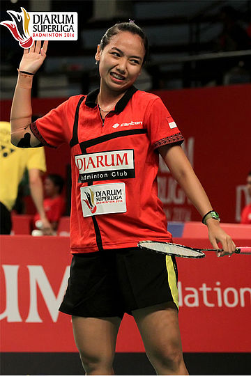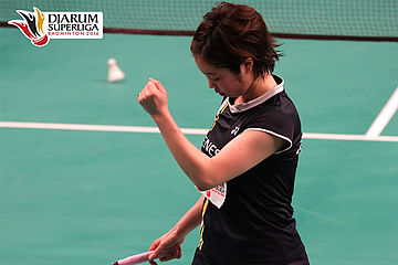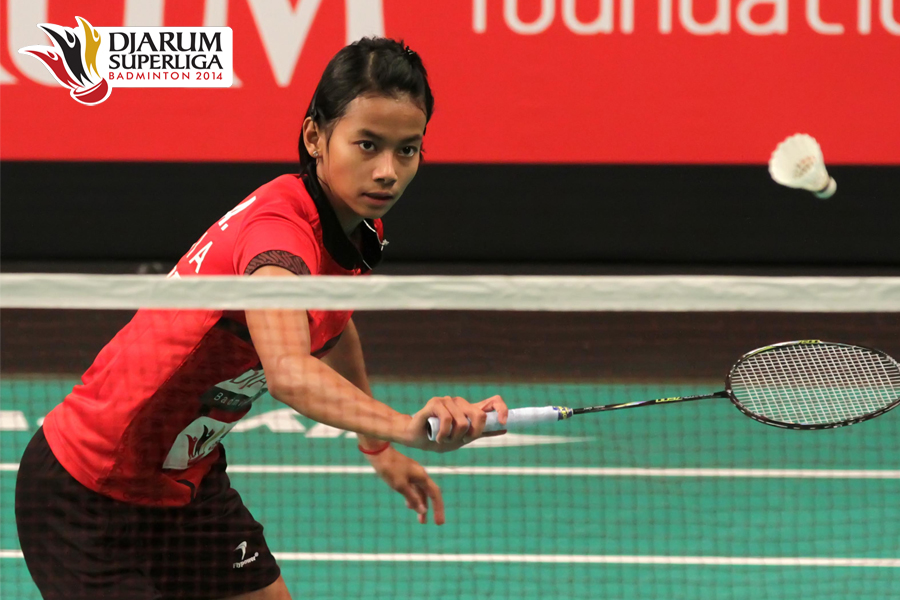 Ekspresi Ana Rovita saat shuttlecock keluar lapangan