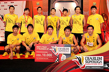 Juara ke empat putra Djarum Superliga 2015, Tonami Jepang berpose bersama.